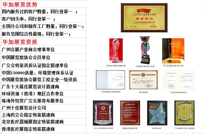 廣州畢加展覽服務(wù)有限公司成立于2008年,注冊(cè)資金600萬。專注于展館展廳設(shè)計(jì)施工、主場(chǎng)策劃執(zhí)行、展臺(tái)設(shè)計(jì)搭建為展覽營(yíng)銷一體化工程的專業(yè)總承包服務(wù)企業(yè)。為服務(wù)于企業(yè)營(yíng)銷多元化,畢加先后成立了品牌策劃設(shè)計(jì)、活動(dòng)策劃執(zhí)行、互動(dòng)多媒體開發(fā)、宣傳片制作、管理軟件研發(fā)、網(wǎng)絡(luò)推廣策劃等各專業(yè)團(tuán)隊(duì)。在管理上統(tǒng)一運(yùn)用展覽工程ERP系統(tǒng)管理,在國(guó)內(nèi):廣州、北京、上海、深圳、長(zhǎng)沙、成都、重慶、武漢、南昌、內(nèi)蒙古、德國(guó)、新加坡、緬甸等地均設(shè)有分公司和制作工廠,總面積達(dá)10萬多平方米。畢加成功為吳太集團(tuán)、哈藥集團(tuán)、匯仁集團(tuán)、貝克聯(lián)合制藥、修正藥業(yè)、大紅鷹、華源醫(yī)藥等大型醫(yī)藥品牌企業(yè)專業(yè)打造了實(shí)效的營(yíng)銷型展臺(tái),并獲得一致好評(píng)。