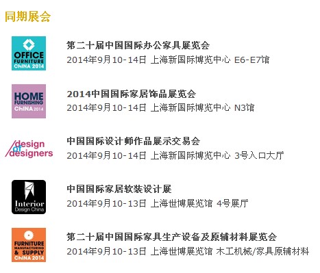 展品范圍 國(guó)際品牌、現(xiàn)代家具、家具設(shè)計(jì)、軟體家具、古典/新古典家具、餐桌椅、