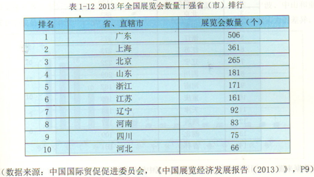 (數(shù)據(jù)來源:中國國際貿(mào)促促進(jìn)委員會,《中國展覽經(jīng)濟(jì)發(fā)展報(bào)告(2013)》,P11)