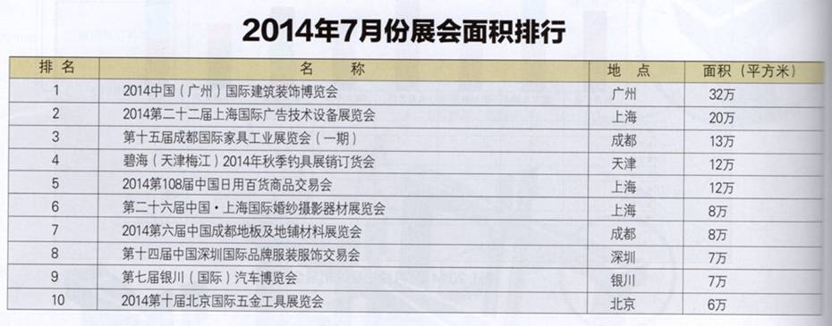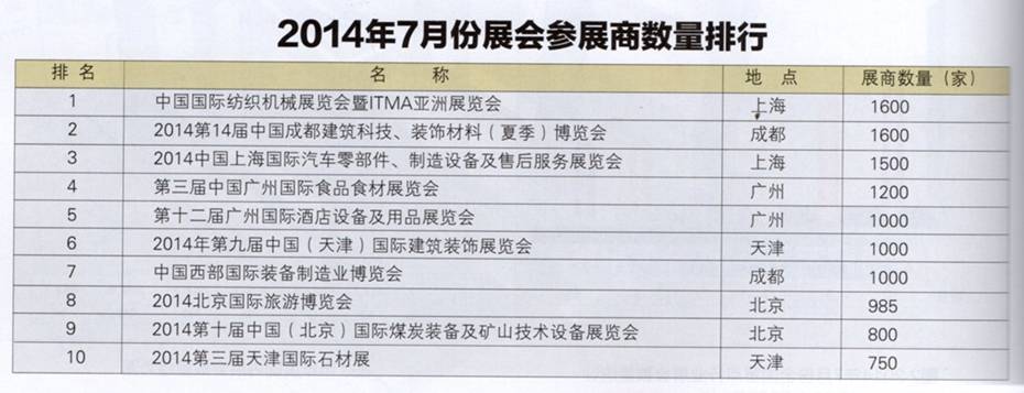 2014年7月份全國(guó)重點(diǎn)城市展會(huì)數(shù)據(jù)大曝光