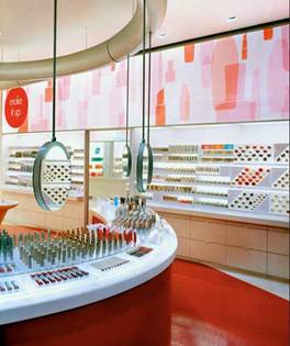 要根據(jù)消費(fèi)者的心理傾向和購物習(xí)慣,對于同一品種或同一系列的化妝品展柜應(yīng)在同一區(qū)位展示,展柜設(shè)計(jì)風(fēng)格要與所展示的化妝品風(fēng)格相一致。陳列的高度要適宜,易于消費(fèi)者觀看感受,提高化妝品的能見度和正面視覺效果??傃远?,一切以方便化妝品銷售為標(biāo)準(zhǔn)。