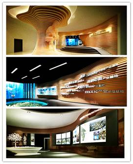 3、展廳文化設(shè)計(jì)。通過空間形象塑造將某種文化氛圍或色彩符號運(yùn)用于空間設(shè)計(jì)之中,創(chuàng)造出在某種文化氛圍下的展廳環(huán)境,讓觀展者的情緒受環(huán)境的影響,對展示品及展品所屬的地區(qū)或企業(yè)的理解加深,從而對展品留下深刻的印象。