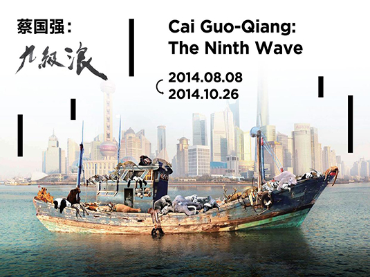 一艘來自蔡國強家鄉(xiāng)福建的木船載著99只仿真動物,成為裝置作品《九級浪》。7月17日,《九級浪》沿黃浦江航行,抵達上海當代藝術博物館館外碼頭,成為藝術事件,揭開“蔡國強:九級浪”的展覽序幕。飽經(jīng)風霜的漁船上,老虎、熊貓、駱駝……大大小小兇猛溫順的動物們耷拉著腦袋,好像在時代的大風浪里暈了頭,令人聯(lián)想起諾亞方舟上被救贖的生命,卻看起來奄奄一息?!毒偶壚恕窂娜莸缴虾#瑲v盡艱辛,完成“海漂”,最終在上海當代藝術博物館大廳展出,成為展覽重要裝置作品。