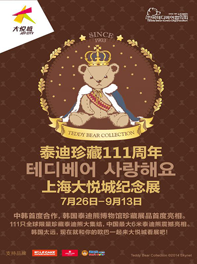 百年來深受全世界女生喜愛、可愛時髦與華麗復古兼?zhèn)涞奶┑闲?,今夏來到上海大悅城!此番中韓首度合作,韓國泰迪熊協(xié)會攜手上海大悅城千里迢迢帶來111組珍貴的古董級泰迪熊,更有中國最大6米長泰迪熊首度展出,韓系夢幻羅曼風席卷上海大悅城。