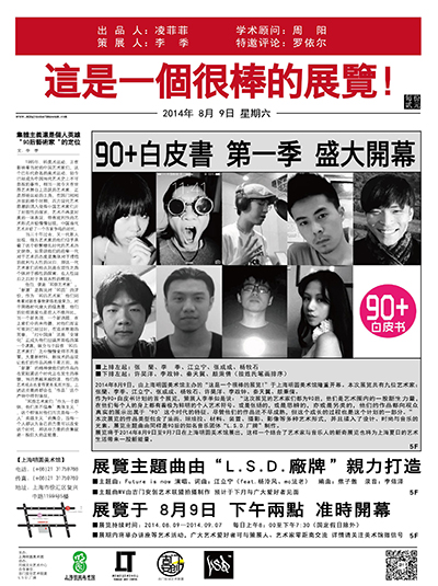 本展覽為“吉門安創(chuàng)藝術聯(lián)盟”企劃“90+白皮書計劃”第一季。本次展覽的作品類型包含了油畫、坦培拉、材料、裝置、攝影、影像等多種藝術形式,并且揉入了設計、時尚與音樂的元素。并且這次展覽的藝術家們都為90后,他們是藝術圈內的一股新生力量,在他們每個人的身上都有著極為鮮明的個人藝術符號。展覽主題曲由同樣是90后的知名音樂團體“L.S.D.廠牌”制作。宣告了90后藝術家們獨立走上藝術舞臺的時代來臨了。