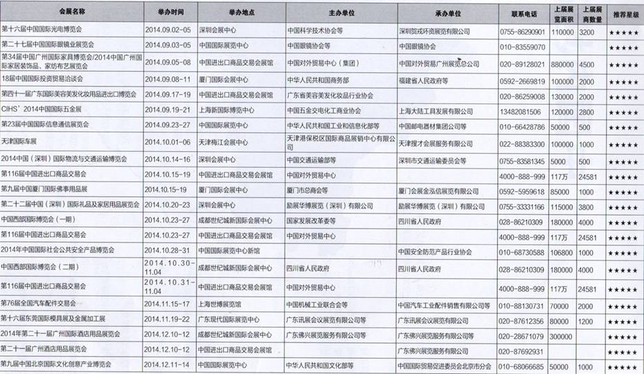 2014年9月-12月推薦重點(diǎn)展會(huì)時(shí)間排期表