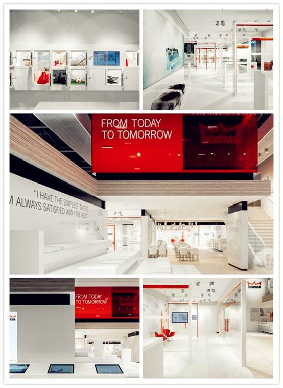 空間效果如何,則在于觀眾是否能自如地觀賞藝術作品,舒適而清晰地看到自己感興趣的東西。在多個展位組合起來的展覽空間中,劃分平面功能的重點在于設計參觀流線,設計出觀眾“觀望———進入———參觀———回顧———離開”的一系列心理空間,這對于設計師的水平也是一個考究的難關。動線必須考慮到人流量的多寡,擺設必須合理化,讓觀眾走動流暢,但同時也要能起到突出展會主題重心的作用。一般而言,以流線為脈,以形象為骨,在“骨脈”的互動中,表現(xiàn)展品的點睛之筆,構成展 示設計的主體構架,從人們的習慣出發(fā),展覽的參觀走線通常為從左至右,而重點必須要給人一種隨意開發(fā)和輕松自由之感。展覽空間的審美設計,不要求過多的變化,而要多樣的統(tǒng)一;不要求刺激,而強調淡化;不要求繁雜,而力求精煉,“空間消失”的境界,才是展覽空間設計最高的審美水準。
