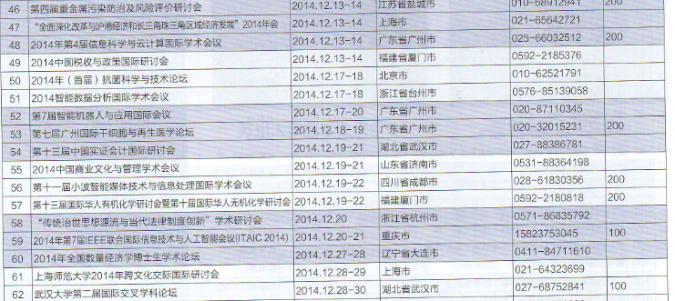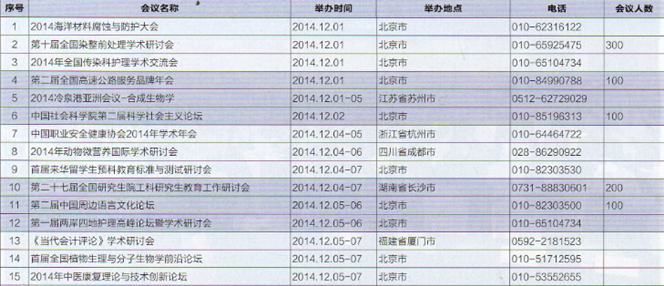 2014年12月全國會議論壇時間排期表