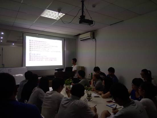 為了讓員工更加認(rèn)識自我,了解自身不足,有針對性的改善自己,用更好的心態(tài)面對各種壓力。昨日,在畢加展覽廣州總部大會議廳召開了一場別具一格的心理培訓(xùn)會議。會議由業(yè)務(wù)部鄺定銳主持,全體業(yè)務(wù)員參加,會議中采用討論會的形式,討論了幾個典型的性格特征,然后進(jìn)行個性測試,并由員工們自己統(tǒng)計(jì)出自己的得分以及所屬性格類型。從而讓同事們了解自己,進(jìn)而做好定位,選擇符合自己的做事方法。