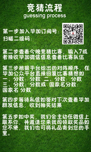 畢加展覽從2014年6月20起推出“我愛世界杯”的大型球迷競猜微信活動(dòng),只要您加入畢加訂閱號(hào),成為我們的一員,您就能參與到這場球迷的熱潮中來,投出您的一票,給您的球星加油,為您的球隊(duì)吶喊,刷微信,贏大獎(jiǎng),您還等什么呢?