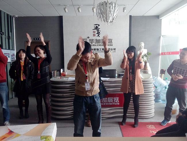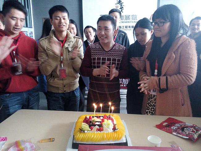 每月一次的生日會拉近的不僅僅是部門間同事的距離,更多的是增加公司凝聚力,為工作添加熱情,添加活力。以創(chuàng)新的設(shè)計理念設(shè)計好方案,以精確的數(shù)據(jù)做好施工圖,以零失誤的施工搭建展臺......相信畢加人在充滿激情的環(huán)境下能夠越做越好,將11年的畢加文化傳達(dá)到我們的服務(wù)上,為客戶在展會上營造氣氛,創(chuàng)造銷售!