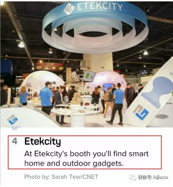 畢加曾在美國CES搭建的Etekcity展臺榮獲美國最大最知名媒體CNET中立評論排名第四 ,擊敗許多巨頭企業(yè)