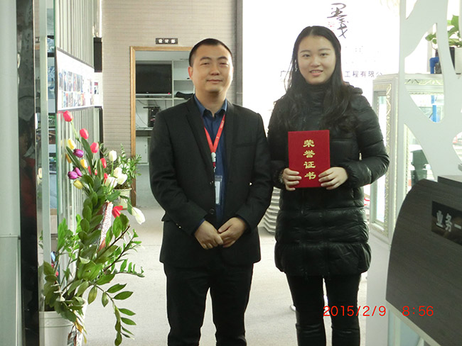 工作安排后是對(duì)員工的頒獎(jiǎng)儀式,業(yè)務(wù)部助理周卓曉年后將結(jié)束自己的實(shí)習(xí)期,回到學(xué)校繼續(xù)課程的展開,她為公司業(yè)務(wù)部的付出,對(duì)年會(huì)策劃的共享我們不會(huì)忘記,為了表揚(yáng)她一直以來的敬業(yè)精神,今天由業(yè)務(wù)總監(jiān)李春忠為她頒發(fā)了“最佳實(shí)習(xí)獎(jiǎng)”獎(jiǎng)項(xiàng),鼓勵(lì)她日后做得更好,飛的更高。