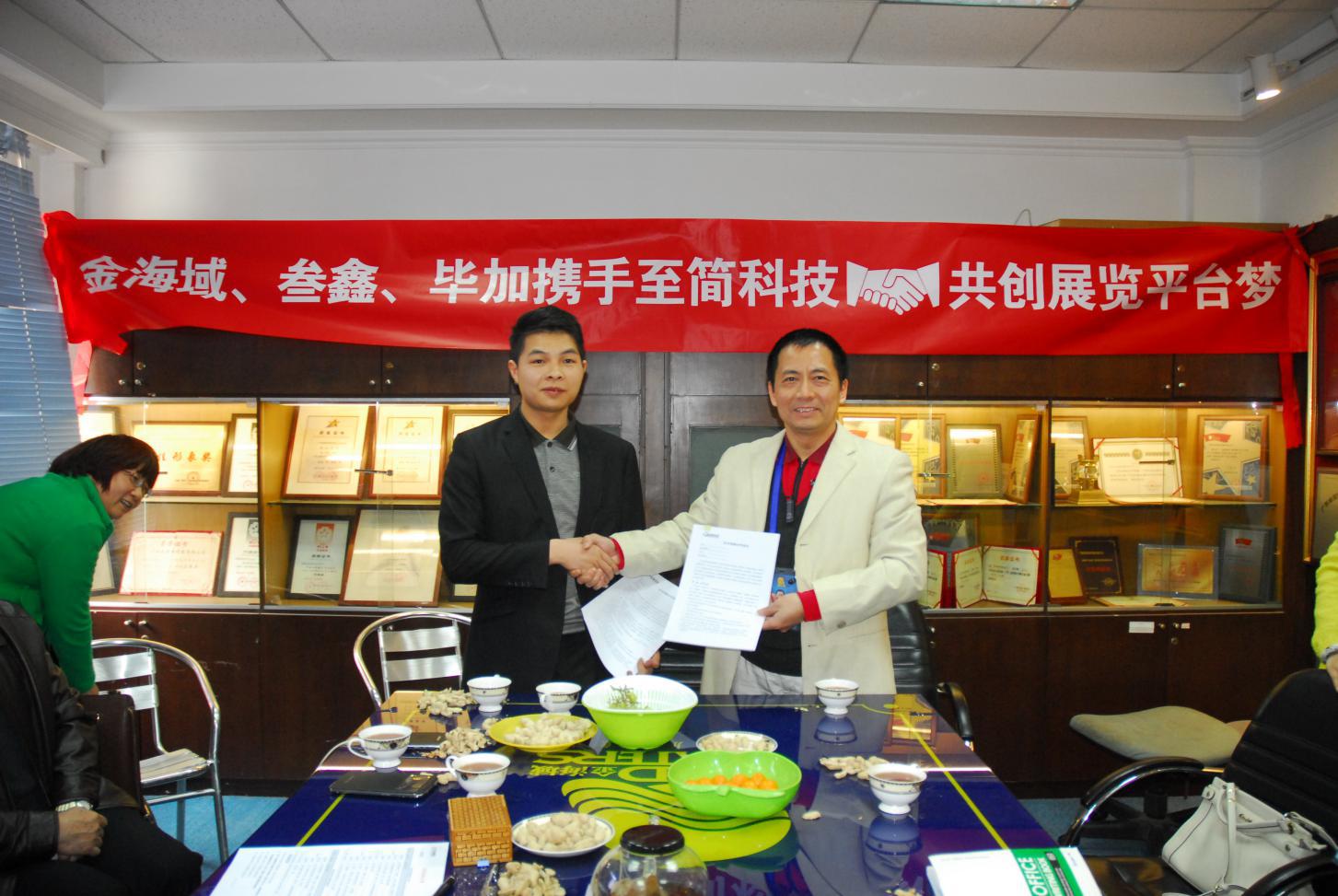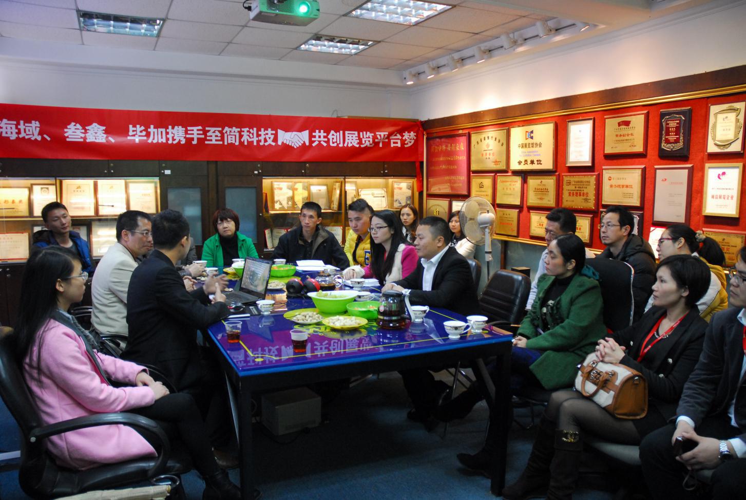2015年2月9號(hào),注定是個(gè)歷史性的時(shí)刻,自94年成立至今有著20年的品牌歷史的金海域傳播有限公司與叁鑫、畢加為著一個(gè)共同的理想,在至簡(jiǎn)科技牽頭下,在廣東會(huì)展組展企業(yè)協(xié)會(huì)會(huì)長(zhǎng)劉松萍與廣州市經(jīng)濟(jì)貿(mào)易委員會(huì)會(huì)展中心主任李曉明及眾多企業(yè)高管的見(jiàn)證下,在金海域本部簽訂了合作協(xié)議。這意味著團(tuán)隊(duì)合作,在展覽這個(gè)新興行業(yè)將全面鋪開!標(biāo)志著四方建立了穩(wěn)固的戰(zhàn)略合作伙伴關(guān)系,為下一步的系統(tǒng)主導(dǎo),資源共享打下堅(jiān)實(shí)基礎(chǔ),邁出重要的一步!