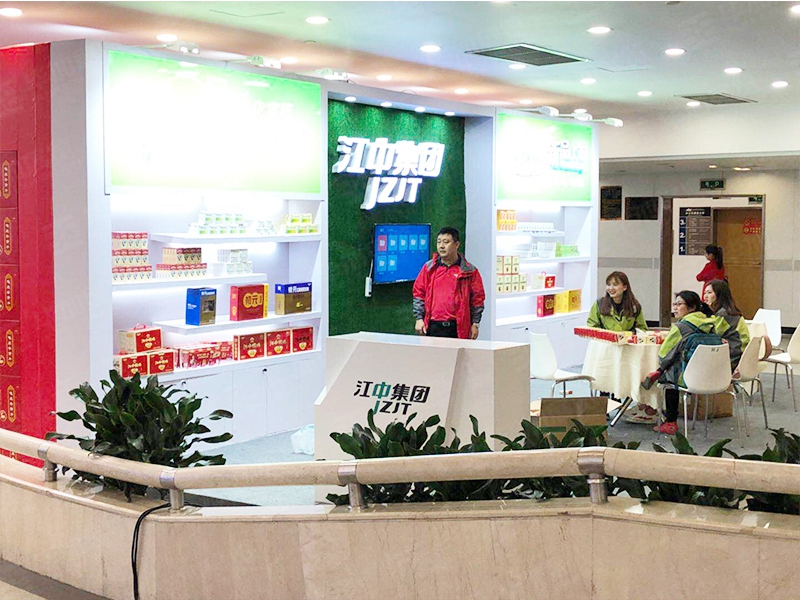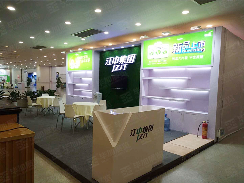 契合江中集團品牌形象和產品特性,采用背板結構,再搭配燈具燈光的效果,襯托出展位高雅、簡單的氛圍,突出一種精致、現(xiàn)代的時尚品味。