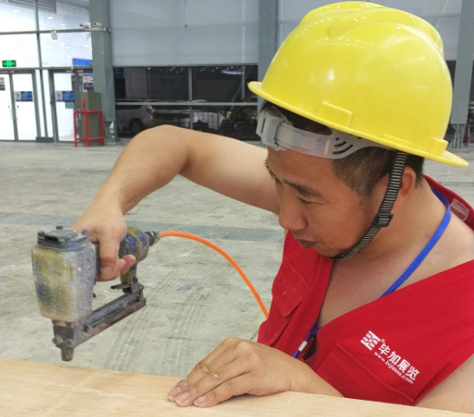 紅色小馬甲,黃色安全帽,如雨點(diǎn)般落下的汗珠,手上永不停息的敲打、安裝施工聲,這就是活躍在現(xiàn)場(chǎng)一線的畢加工程師傅們,他們用自己的手藝、專業(yè)、汗水為展會(huì)的順利開幕打下堅(jiān)固的基礎(chǔ)。