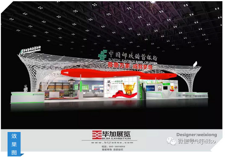畢加金交會展臺設(shè)計助力中國郵政儲蓄銀行閃亮全場,并廣泛受到好評。