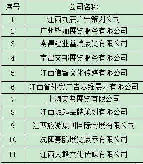 第五屆世界綠色發(fā)展投資貿(mào)易博覽會(huì)(以下簡(jiǎn)稱“第五屆綠發(fā)會(huì)”)將于2018年11月30日-12月3日在南昌綠地國(guó)際博覽中心舉辦。根據(jù)第五屆綠發(fā)會(huì)推薦搭建商征集公告有關(guān)要求,經(jīng)企業(yè)自愿報(bào)名,第五屆綠發(fā)會(huì)展覽展示部及主場(chǎng)服務(wù)商資格審查并公示無(wú)異議后,確定了廣州畢加展覽服務(wù)有限公司等11家企業(yè)為第五屆綠發(fā)會(huì)展覽展示推薦搭建商,現(xiàn)予公布。