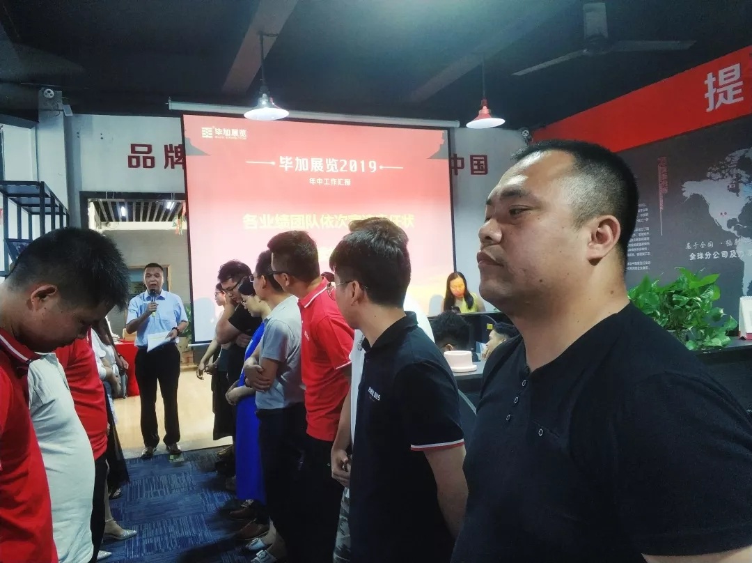 各分公司老總上臺介紹,宣誓下半年的一個宏偉志愿!年初每個人在集團中挑選的對手,要緊盯自己的競爭對手,實現下半年的業(yè)績目標,干倒對手,實現目標!