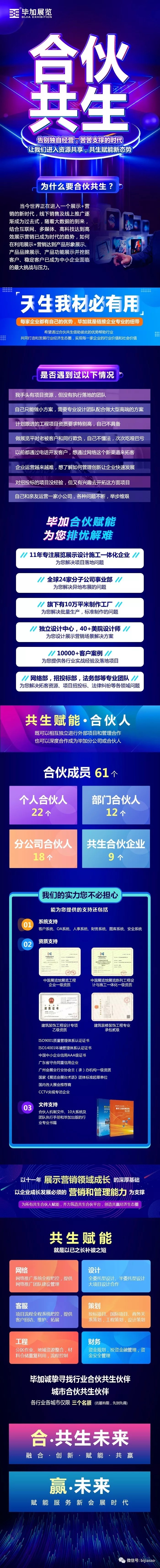廣州畢加展覽服務(wù)有限公司成立于2008年,注冊資金2000萬。11年專注于展廳博物館設(shè)計施工、展臺設(shè)計搭建、主場活動運營策劃、展具專柜定制等專業(yè)服務(wù),獲得了中國展覽館工程一級、建筑裝飾總承包貳級,設(shè)計乙級等資質(zhì),是央視CCTV受邀專訪企業(yè),并參與起草了國家《展覽會展臺術(shù)語》(T/CCPILCSC 023-2019)團體標準。畢加展覽在國內(nèi)外設(shè)有24個分子公司及辦事處,擁有100000㎡產(chǎn)業(yè)園和制作工廠,是一家展示營銷設(shè)計施工一體化的專業(yè)服務(wù)企業(yè)。畢加以十二年展示營銷領(lǐng)域成長的深厚基礎(chǔ),以企業(yè)成長發(fā)展必須的營銷和管理能力為支撐,為所有共生合伙人賦能,齊力筑造共生合伙平臺,創(chuàng)造共贏經(jīng)濟生態(tài)圈。