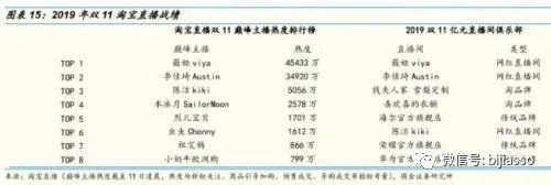 國金證券研報顯示,2019年“雙11”淘寶直播引導(dǎo)成交近200億,有17個直播間引導(dǎo)成交超過億元,其中4個網(wǎng)紅直播間(薇婭、李佳琦等)、3個淘品牌直播間(雪梨、張大奕等)、其余都是傳統(tǒng)大品牌的天下(小米、海爾等)。從淘寶直播雙11巔峰直播熱度排行榜也能看出主播帶貨的頭部化,薇婭、李佳琦二人的熱度(粉絲關(guān)注度、導(dǎo)購成交等指標(biāo)綜合考量)是第二梯隊的10倍以上,考慮到成交額也是數(shù)倍以上,保守估計薇婭、李佳琦“雙11”的引導(dǎo)成交至少超過5億、3億。與商家直播犬牙交錯的格局相比,網(wǎng)紅直播帶貨的馬太效應(yīng)無疑是巨大的。