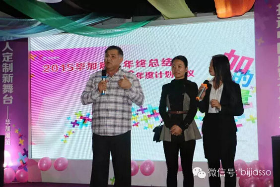 隨后又一位重量級(jí)人物——易豪,易副總經(jīng)理上臺(tái)進(jìn)行2015年總結(jié)及2016年計(jì)劃。畢加展覽一路走來可謂風(fēng)雨交加,一句耳熟能詳?shù)脑挻蠹掖蟾哦贾?ldquo;不經(jīng)歷風(fēng)雨,怎能見彩虹”,現(xiàn)今的畢加展覽如此強(qiáng)大少不了多年來磨練;少不了各位高管的細(xì)心經(jīng)營(yíng)與教導(dǎo);少不了默默為畢加付出的同事。。。。。。