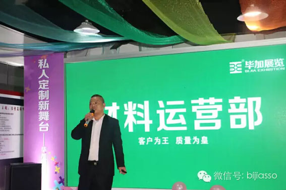 年會邀請到畢加展覽第一事業(yè)部戴柏凡到現場,戴總還帶來了幾位小伙伴,也是上海事業(yè)部的同事,響亮的口號中得知他們實力是杠杠的。
