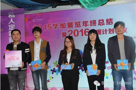 有個人獎必定有團隊獎,那么榮獲2015年度畢加展覽業(yè)務團隊獎的是由李朱妹帶領的業(yè)務一部,一群90后證明他們是實力派。