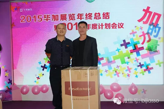 緊接著頒發(fā)的是畢加集團個人業(yè)績冠軍獎,榮獲畢加展覽2015年度集團個人業(yè)績冠軍獎的是墨戈畢加總經理,畢加項目部總監(jiān)楊興強楊總。不錯,真的是項目部,真的是耶,就是項目部。