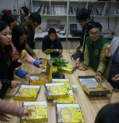 每當小編我在敲著鍵盤,奮筆疾書的時候,這兩天遠處都會傳來了一陣呼喊“有披薩,趕緊的!”“有炸雞,快點!”說那時那時快,一幫春運陣勢的隊伍刷的一下涌進了會議室。小編也不甘示弱急忙的沖了過去。便見到了以下陣仗!