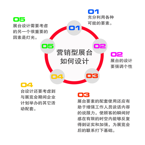 營(yíng)銷型展臺(tái)是指具備營(yíng)銷推廣功能的展臺(tái),在設(shè)計(jì)時(shí)從參展企業(yè)參展目的出發(fā),不僅考慮外觀造型、產(chǎn)品展示、企業(yè)實(shí)力、功能布局等等,而且將視聽觸覺相結(jié)合,務(wù)使每一個(gè)環(huán)節(jié),每一步驟都考慮到營(yíng)銷功能的需求,使展臺(tái)具備營(yíng)銷功能和有利品牌推廣的特征。