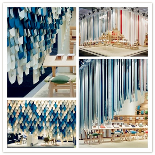 KVADRAT是歐洲領(lǐng)先的設(shè)計(jì)紡織品制造商,此次展臺(tái)的最大亮點(diǎn)是,環(huán)繞在展臺(tái)頂部的桁架上的1500紡織帶