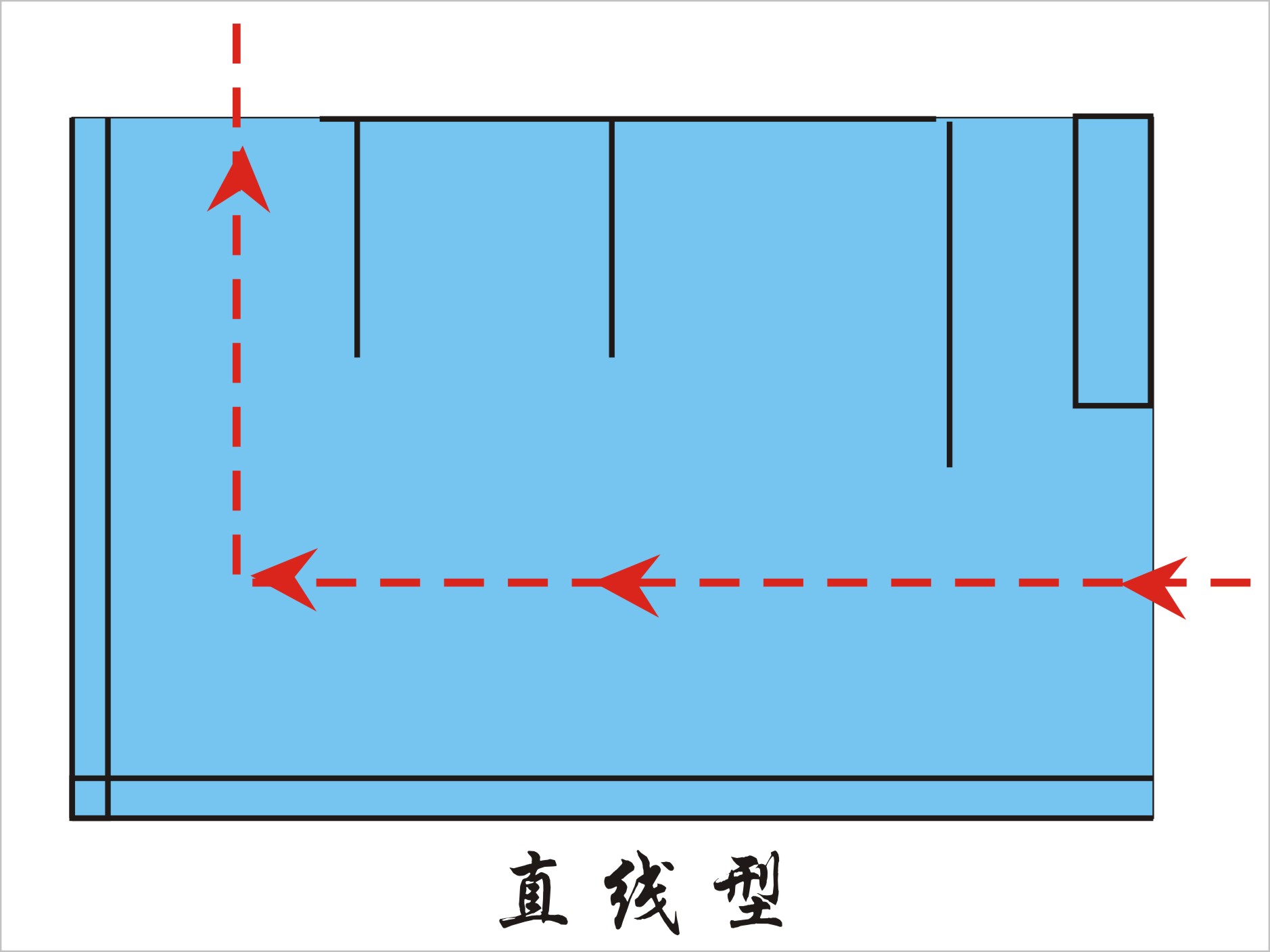 1、直線路線:是指平面布局中穿越式線路,空間的入口和出口在不同的兩側(cè),人流從入口進(jìn)入后,不論怎樣流動(dòng),最后都是從另一側(cè)出口離開,這種流線比較適合狹長的室內(nèi)空間場(chǎng)所,空間主體一般都在兩側(cè)擺放,人流一般不會(huì)有太大沖突,是比較簡(jiǎn)單的流線形式。這種直線流動(dòng)的空間平面布局中大致分為兩種:一種是對(duì)稱式布局,采用這種布局,是流線通道明確,但略顯呆板,另一種是不對(duì)稱的,顯得錯(cuò)落有致,提高購物環(huán)境,引出潛在購物者。