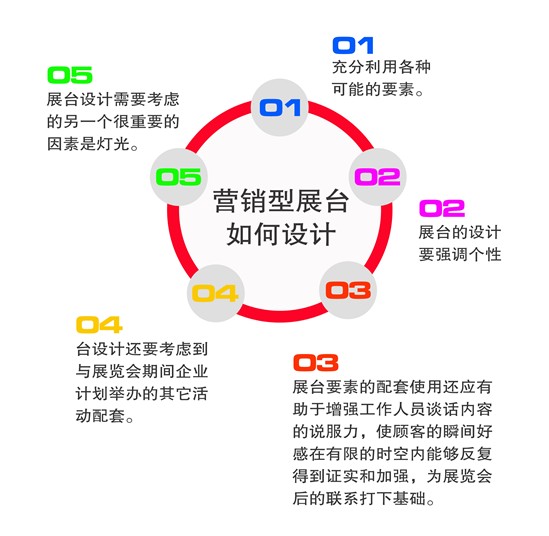 所謂的營銷型展臺是指具備營銷推廣功能的展臺,是由畢加展覽全國首創(chuàng),是指在設計時從參展企業(yè)參展目的出發(fā),不僅考慮外觀造型、產(chǎn)品展示、企業(yè)實力、功能布局等等,而且將視聽觸覺相結(jié)合,務使每一個環(huán)節(jié),每一步驟都考慮到營銷功能的需求,使展臺具備營銷功能和有利品牌推廣的特征。