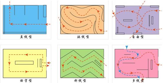 人作為展會活動的主體在展臺空間中處于參觀運(yùn)動的狀態(tài),是在運(yùn)動中體驗并獲得最終空間感受的。對展臺空間的組織在一定程度上依據(jù)參觀者在空間中的行動路線,同時,也要根據(jù)展品內(nèi)容及其空間分布安排動線走向,對動線劃定要明確順序性、便捷性和靈活性。動線在展覽中的作用,更加明確了人和空間的關(guān)系,體現(xiàn)了以人為主體的空間設(shè)計觀念。