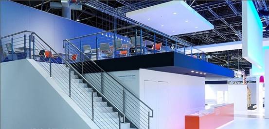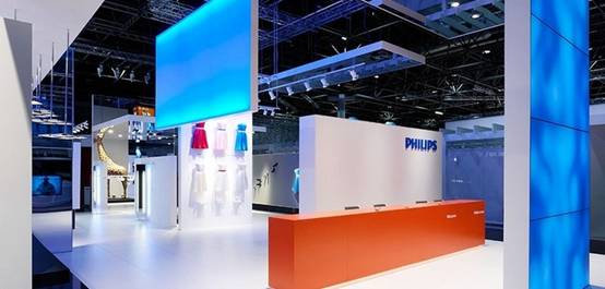 在實際應用中,60cm以下的區(qū)域常作為倉儲空間使用,而190cm以上的區(qū)域有多種用途。如導引系統(tǒng)的標示、廣告的布置、企業(yè)形象的宣傳等用途。但其高度一般不宜超過250cm。這一限定因近年來展位大型化而被突破。因為190cm以上的區(qū)域難以吸引觀眾的近距離目光,但能引起觀眾遠距離的注意。這樣,人們在參觀時不致抬頭或彎腰下蹲。人的頸脊、腰椎處于正常的活動范圍之內,不會感到吃力和疲勞。