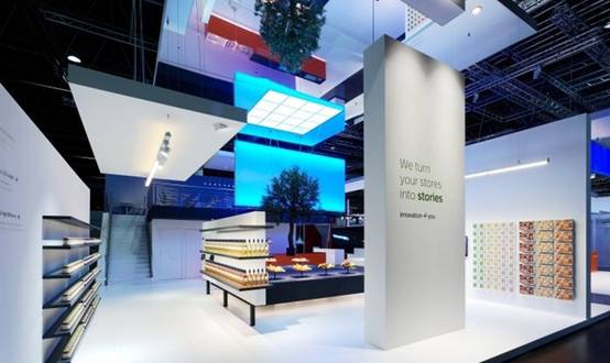 陳列密度指展品及道具在其所處環(huán)境中多與少的程度。其具體表示值是由展品及道具所占地面面積與展位或展廳面積之間的百分比顯示的。一般而言,大型展臺的陳列密度以30%~50%為宜,小型展臺最多不宜超過60%。