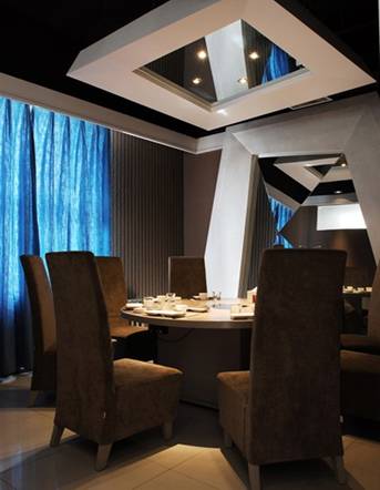 在對面的利用中,使用條形或整幅的鏡面玻璃形成虛中見實(shí)的視錯覺效果,是展示設(shè)計(jì)較為常用的一種視錯覺處理辦法。在陳列布置上巧妙的利用鏡子將有助于制造假象,在視覺上擴(kuò)大空間范圍。此外鏡子還能產(chǎn)生一種虛幻的對稱效果。