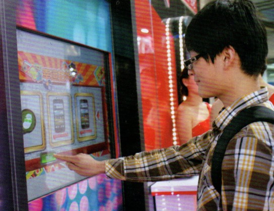 想獲得參展方提供的大禮嗎?那就按動這個按鈕吧!輕輕一按,可人的禮品便會現(xiàn)場奉送,且按者有份,不一會兒工夫,展臺一旁便擺起了長龍,調(diào)動起展會的人氣。