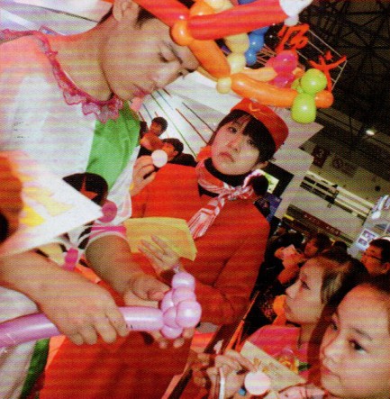 展臺人員的可愛小丑扮相吸引了小孩子的眼球。小丑能應(yīng)孩子的要求將手中的氣球捏成各種形狀,小孩子驚奇于小丑的“魔法”,久久不愿離開,展臺被這群可愛的孩子圍得水泄不通,吸引孩子的注意力是提升展臺人氣的一大法寶。